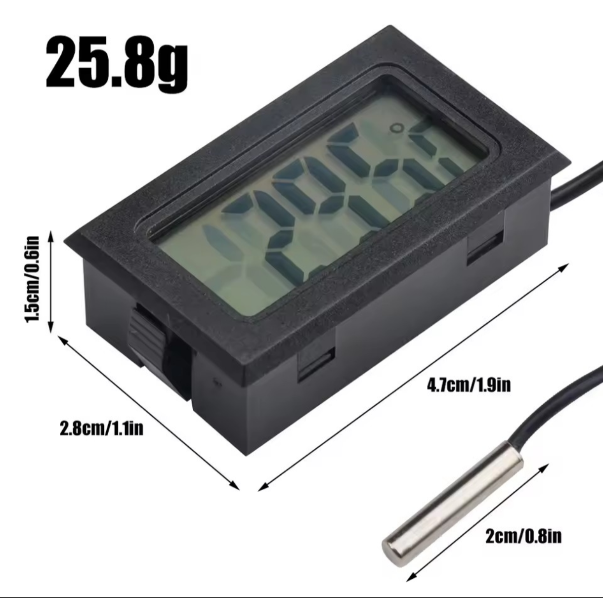 termómetro digital con sonda ideal para proyectos y control de temperatura de equipos de refrigeración y monitoreo en reparaciones.